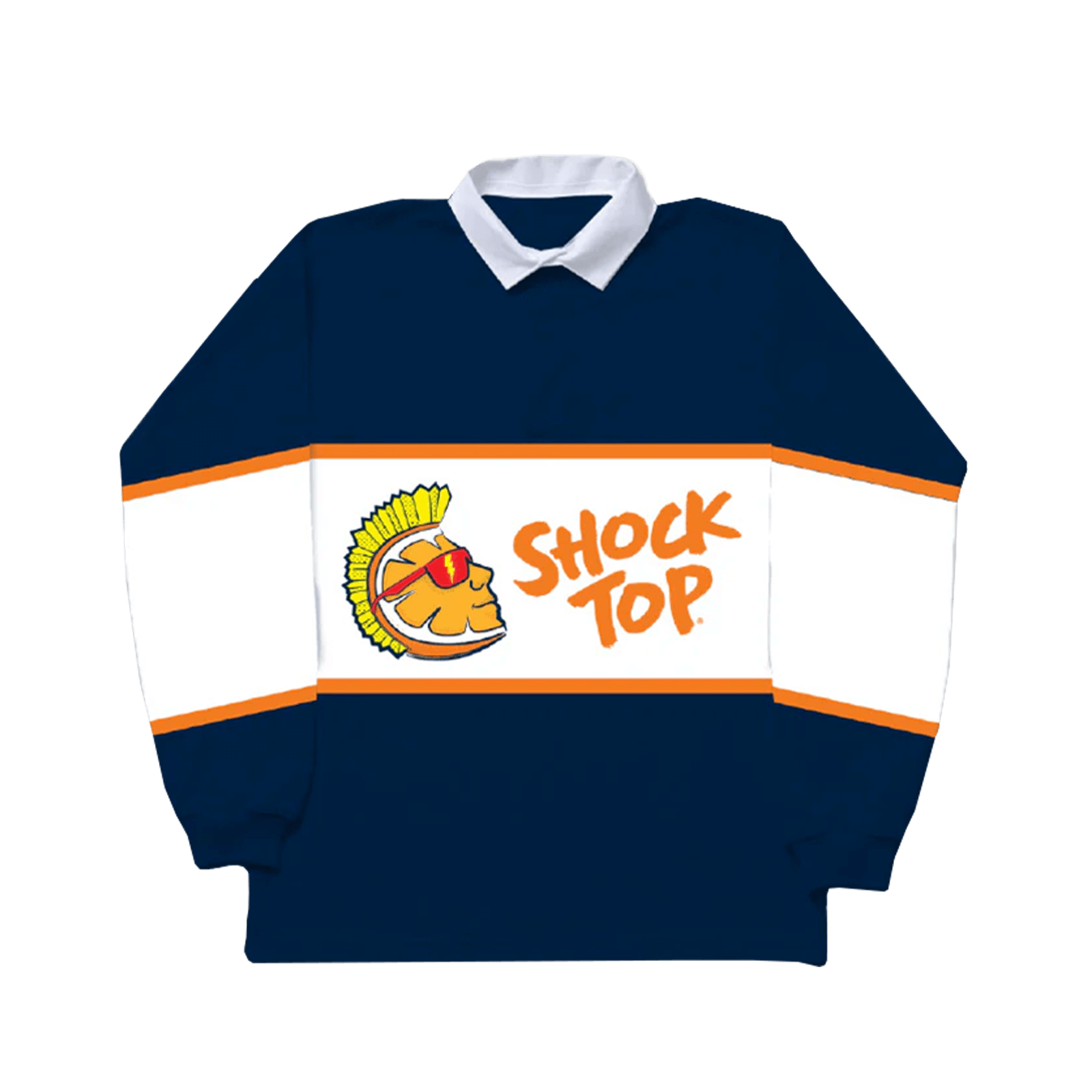 Introducing the Team Shock Top Rugby Shirt: Where Scrumming Meets Sipping